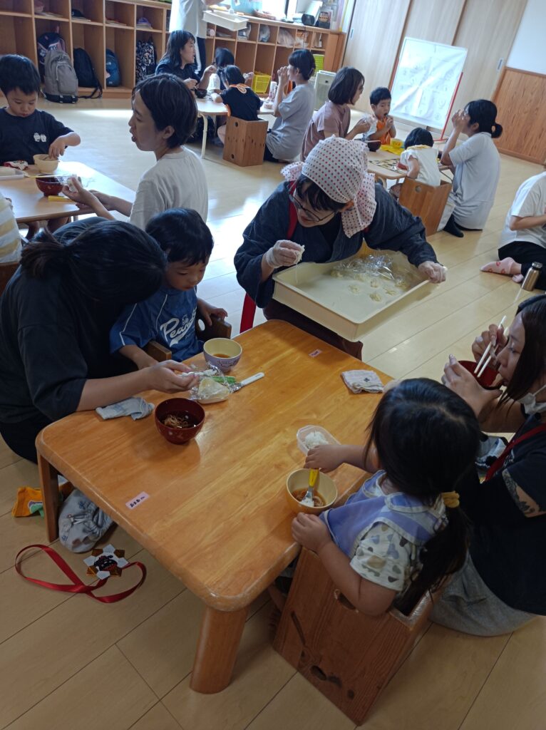 子どもたちが遊んでいる間、お家の方にはそうめんを茹で、一口ずつ分けてもらいました。