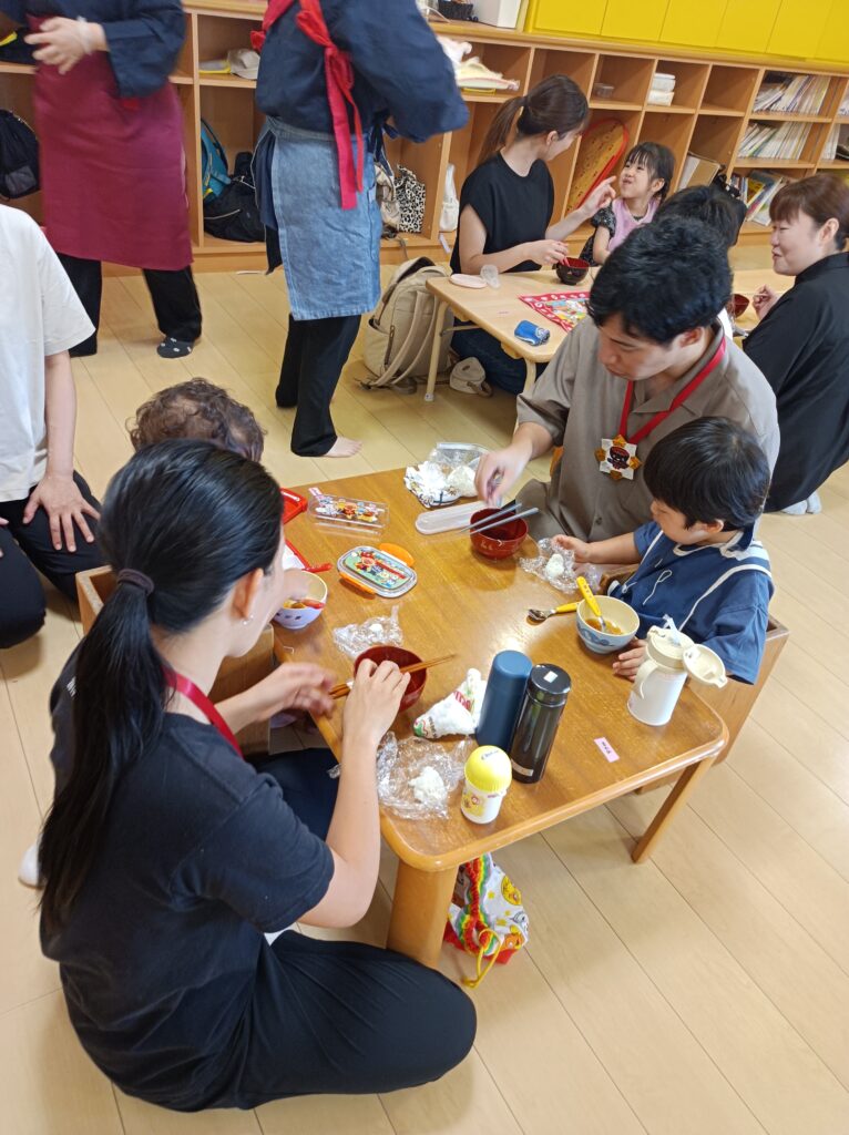 お子さんと少しの間離れ、お母さんやお父さん同士の話も盛り上がって楽しい時間を過ごしていただきました。