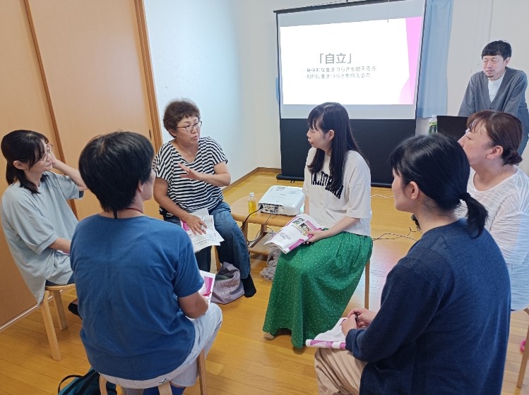 講義の途中には、「自立」ってどんなイメージ?からグループワークをしていただき、お母さん方もそれぞれ感じることを話していただく場面も多くありました。