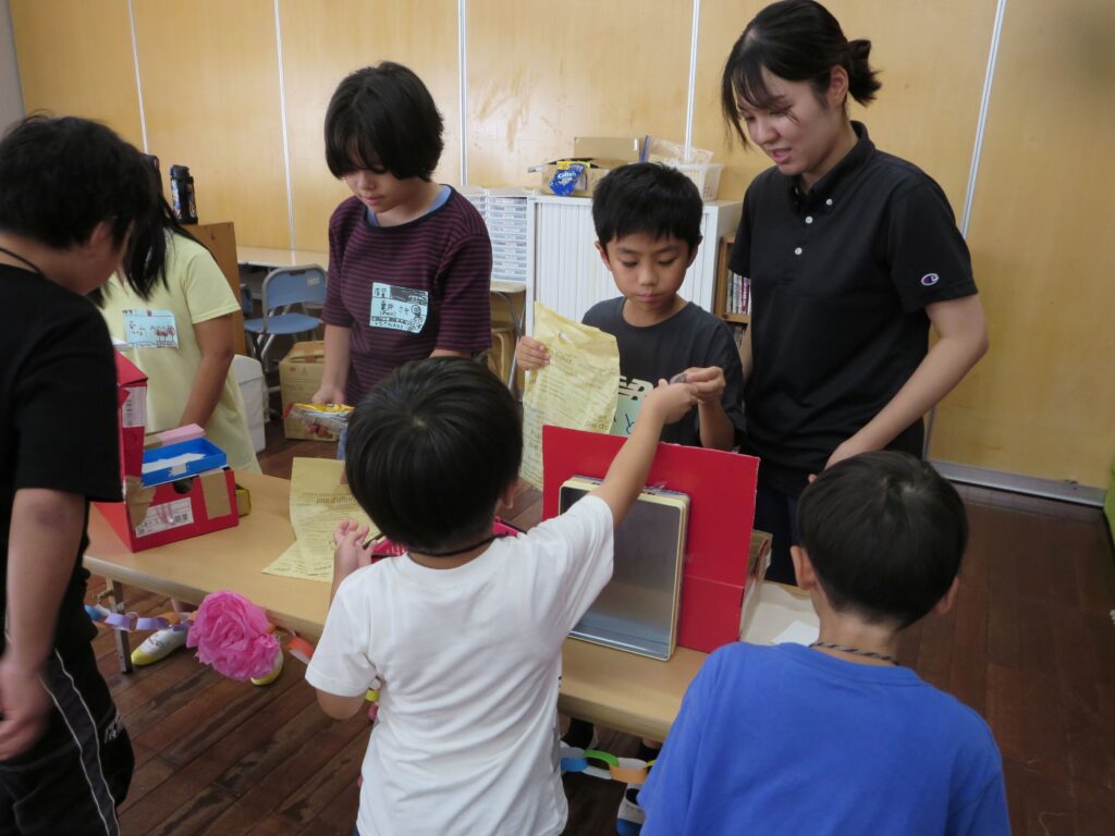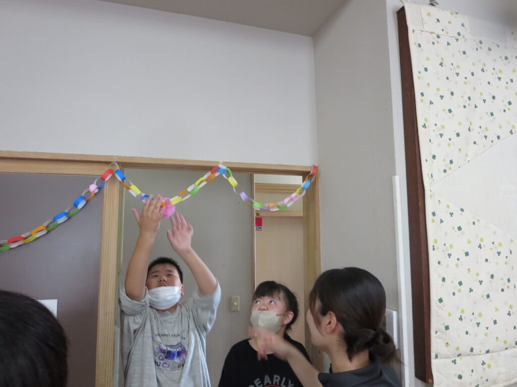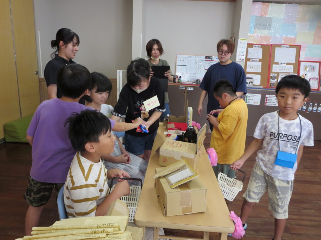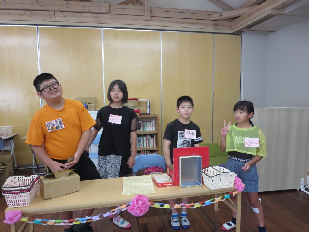 くじらグループの子ども達でどんなお店にするか話し合い、手作りのレジ機やチラシ、看板、装飾と、総力戦で開店に向けて準備を楽しみました。