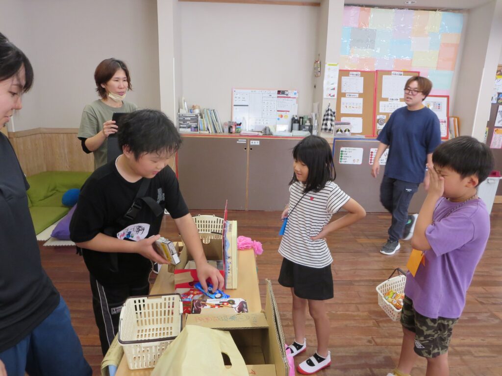 開店し、いるかグループの子ども達が買い物にくると、嬉しそうに接客する子ども達でした。くじらグループも売り手と買い手を交代しながら、買い物を楽しみました!