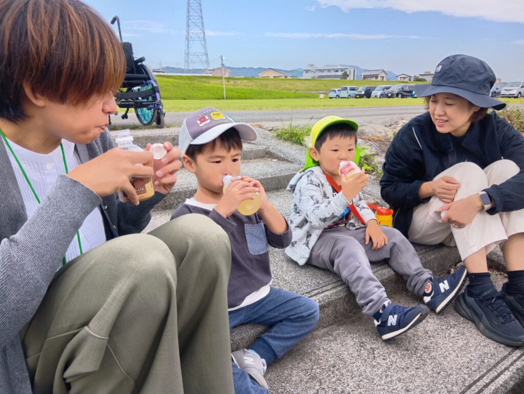 最後にジュースを買ってみんなで飲んで「さいこー。」と笑顔になり、延岡の名物である鮎やなを堪能した日となりました。