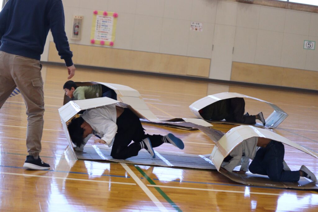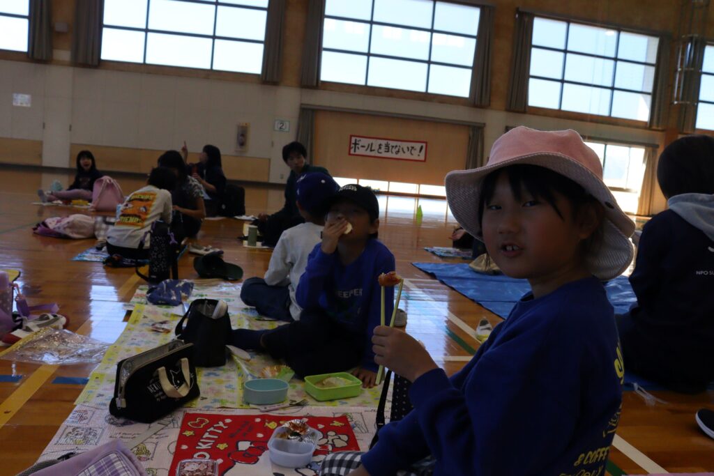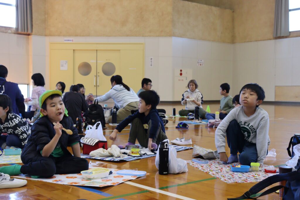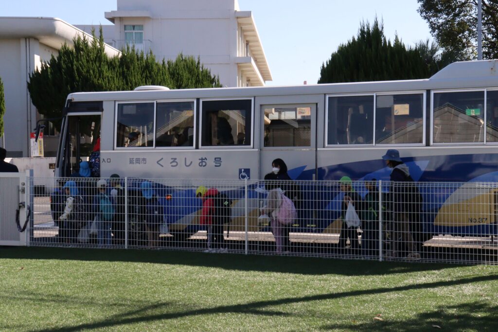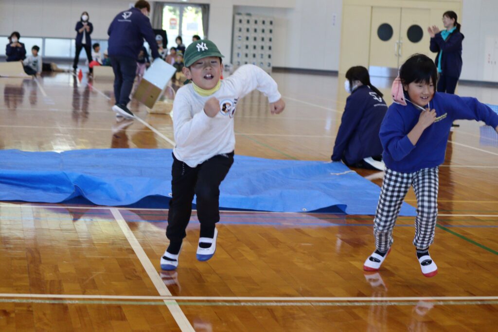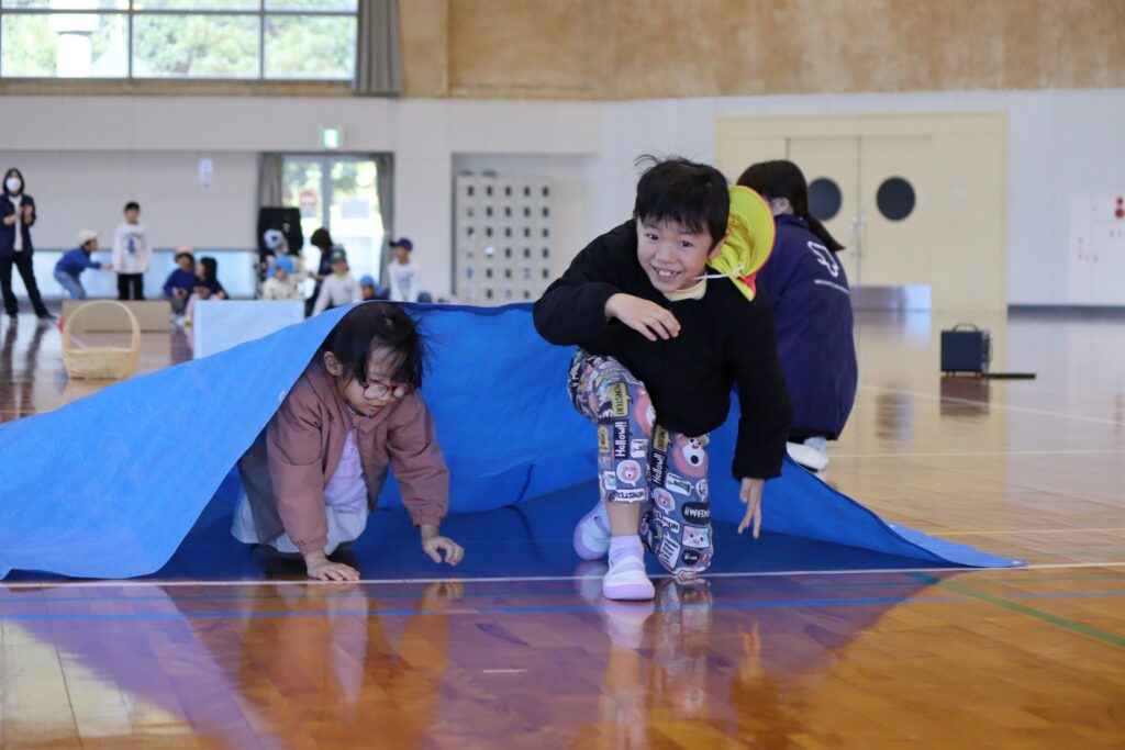 11月22日(土)にいるかグループ、くじらグループ合同で門川の心の杜体育館へ遠足に行きました。体育館への移動には片道ずつとなりましたが、福祉バスに乗る経験も出来ました。体育館内では、レクリエーションで障害物競争をしたり、お友達と一緒にお弁当を食べながら交流を楽しみました!
