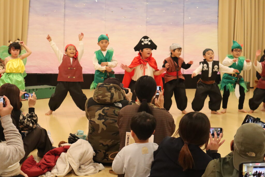 今回のテーマは「ミュージカル♪」でした。とんぼグループは『11ぴきのねこ』みつばちグループは『ピーターパン』をしました。23名全員が参加することができ、子どもたち1人1人が主役になれる発表会となりました!