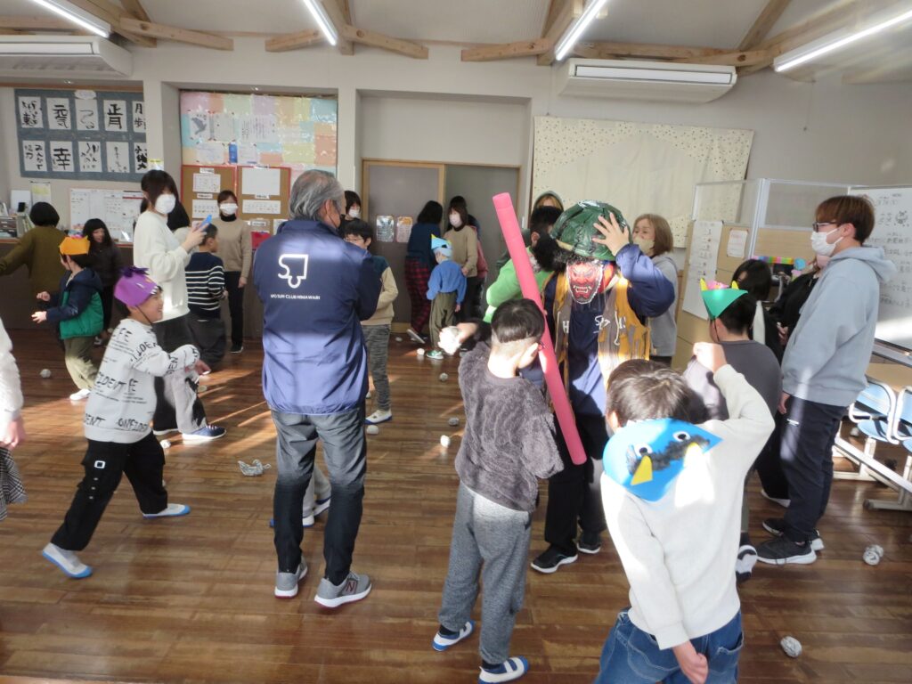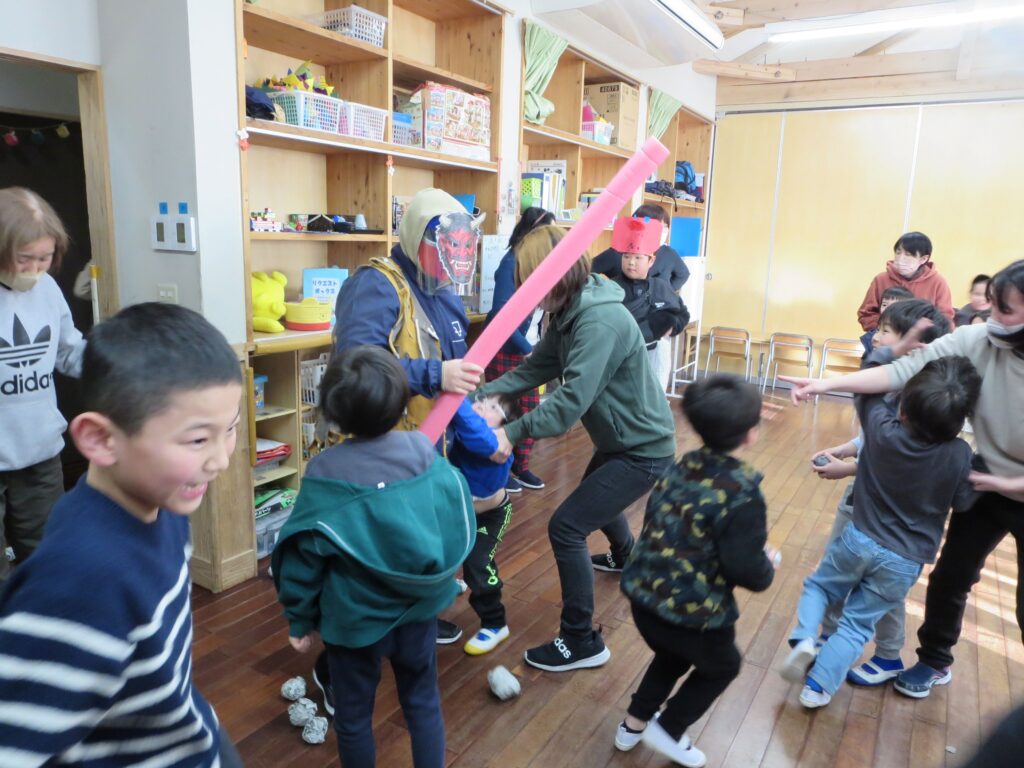ひまわりみんなで豆まきを楽しみ、鬼を退治しました!