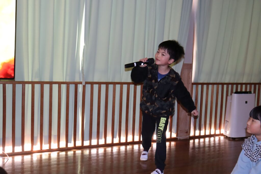 午後の活動では、カラオケを行いました。一人一人好きな曲を選んで、歌ったり、踊ったり、お友だちの曲を聴いて、鈴やタンバリンで盛り上げたりと、楽しい時間となりました。