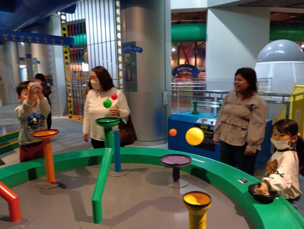 年長児のみつばちグループさんは、これまでのお出かけの集大成として親子で電車に乗って宮崎市にある科学技術館に行ってきました。わくわくドキドキみんなでの初めての電車の旅でしたが、公共の場でのお約束やルールはしっかり身についていて、電車の中や施設の中でもお約束を守って楽しくあそぶことができました。さすが!のみつばちさんでした。
