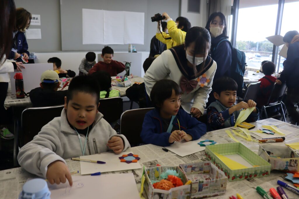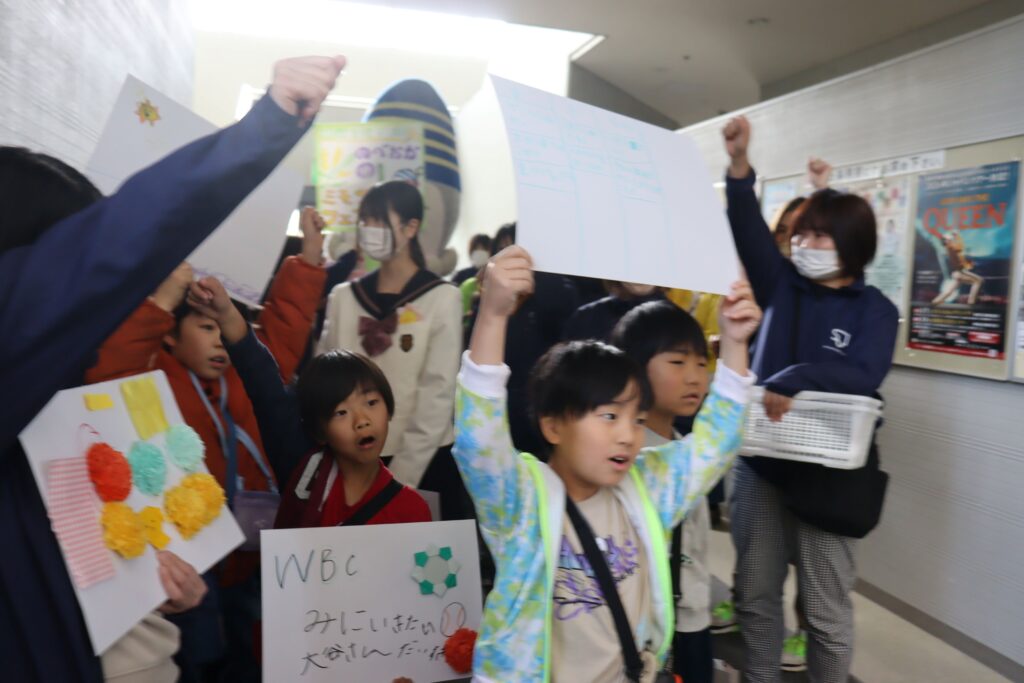 3月7日に、文化センターであったイベント(ミモザフェス)に行きました。イベントの中で、「みんなの思いを主張しよう!」というコーナーがあり、そのコーナーに参加してみました。みんなそれぞれの心の中にある願いや訴えたいことを、絵や文字を使ってプラカードに描きました。「給食のメニューを毎日カレーにしてほしい」「WBCを見に行きたい」「猫ちゃんと遊びたい」「高千穂鉄道を復活させて欲しい」など、それぞれの想いのこもったプラカードが出来ました。そのプラカードを持ち、イベントのスタッフの掛け声の元、文化センター内を行進し、みんなの願いを主張しました。延岡のご当地キャラクター「のぼるくん」の参加も♪みんな元気よく声を出して行進していました。 帰りには、自動販売機で、好きなおやつの時に飲むジュースを買い、充実した活動となりました。